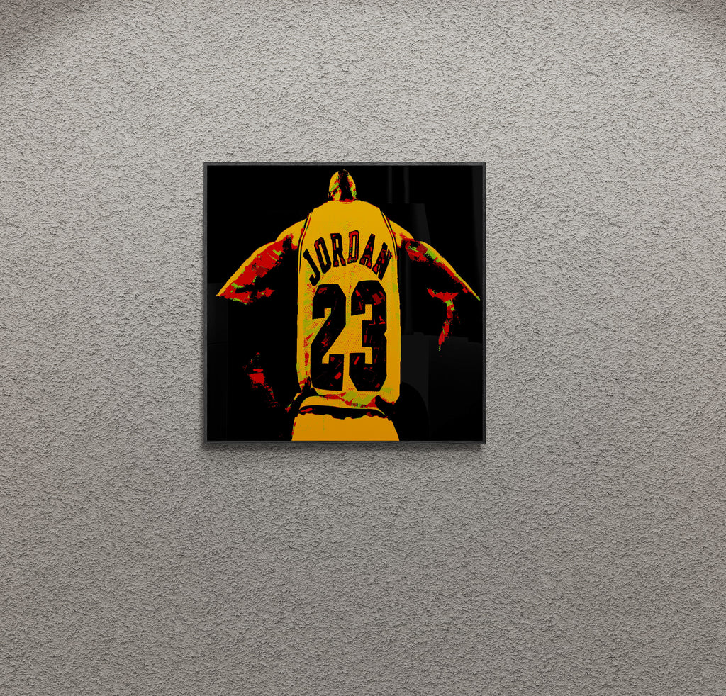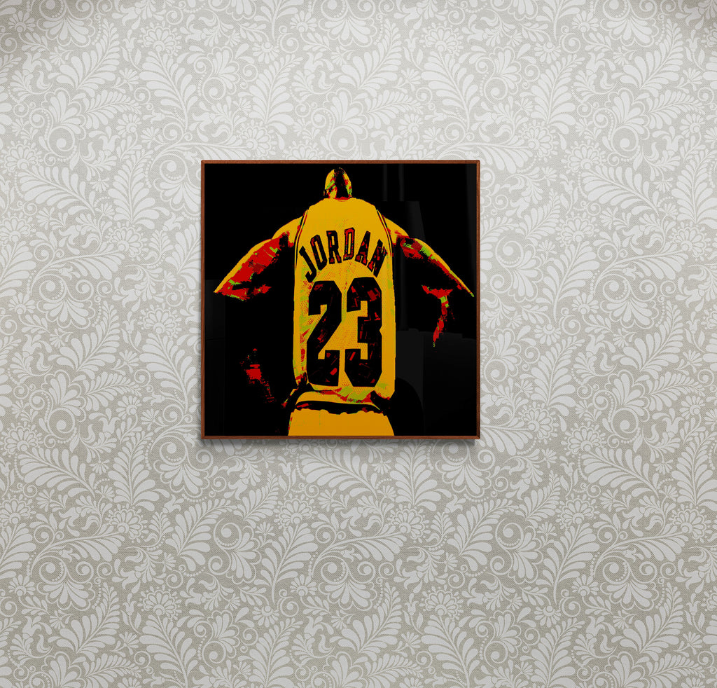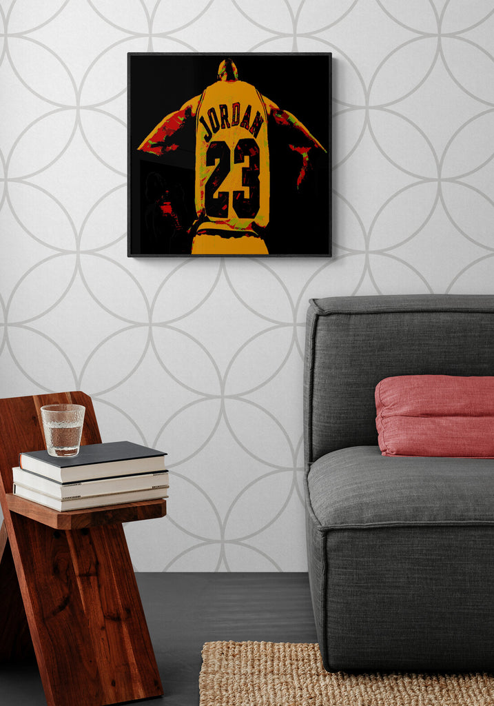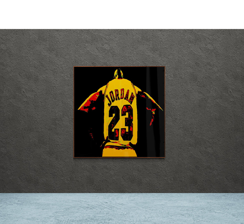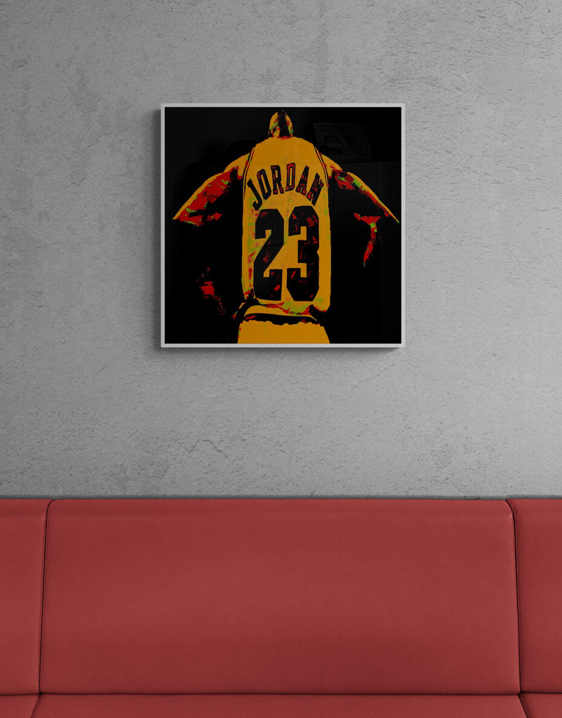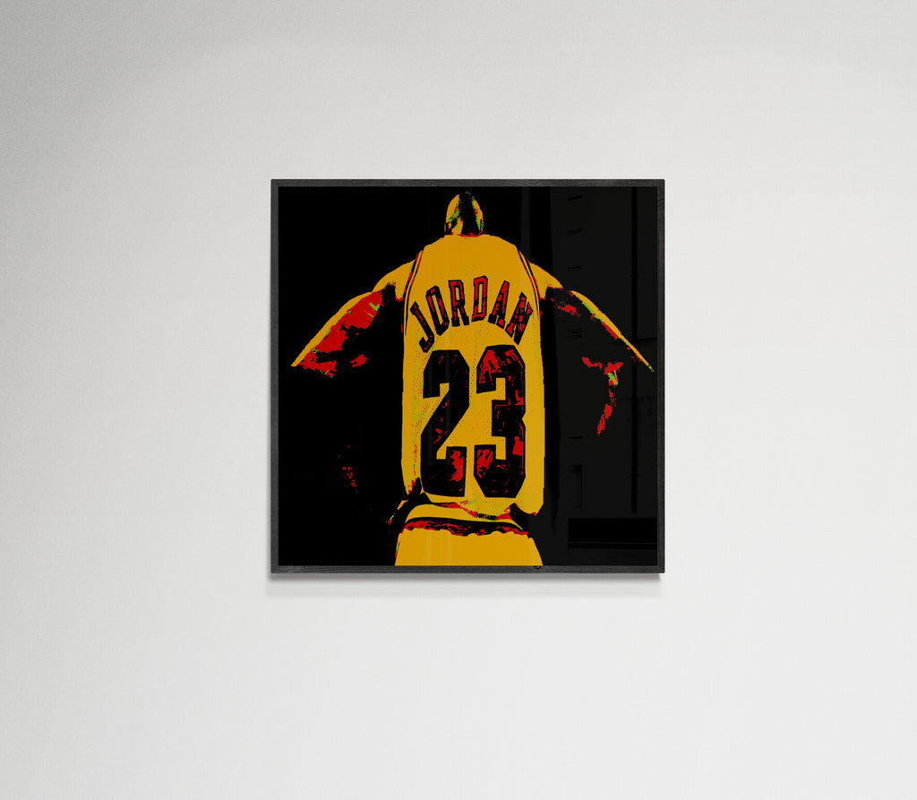 This striking graphic art design pays tribute to the legendary Michael Jordan, capturing his powerful stance from behind in bold, abstract tones. The iconic number 23 dominates the composition, symbolizing athletic excellence, determination, and enduring legacy. With its dynamic color treatment and sharp contrasts, Airborne Legacy is a visual celebration of greatness, perfectly blending sports history with contemporary artistic flair.