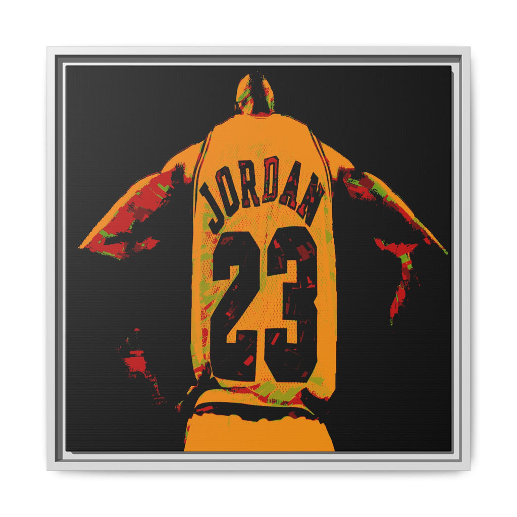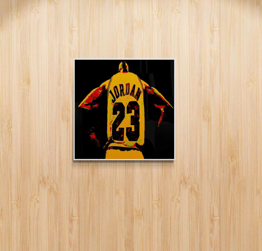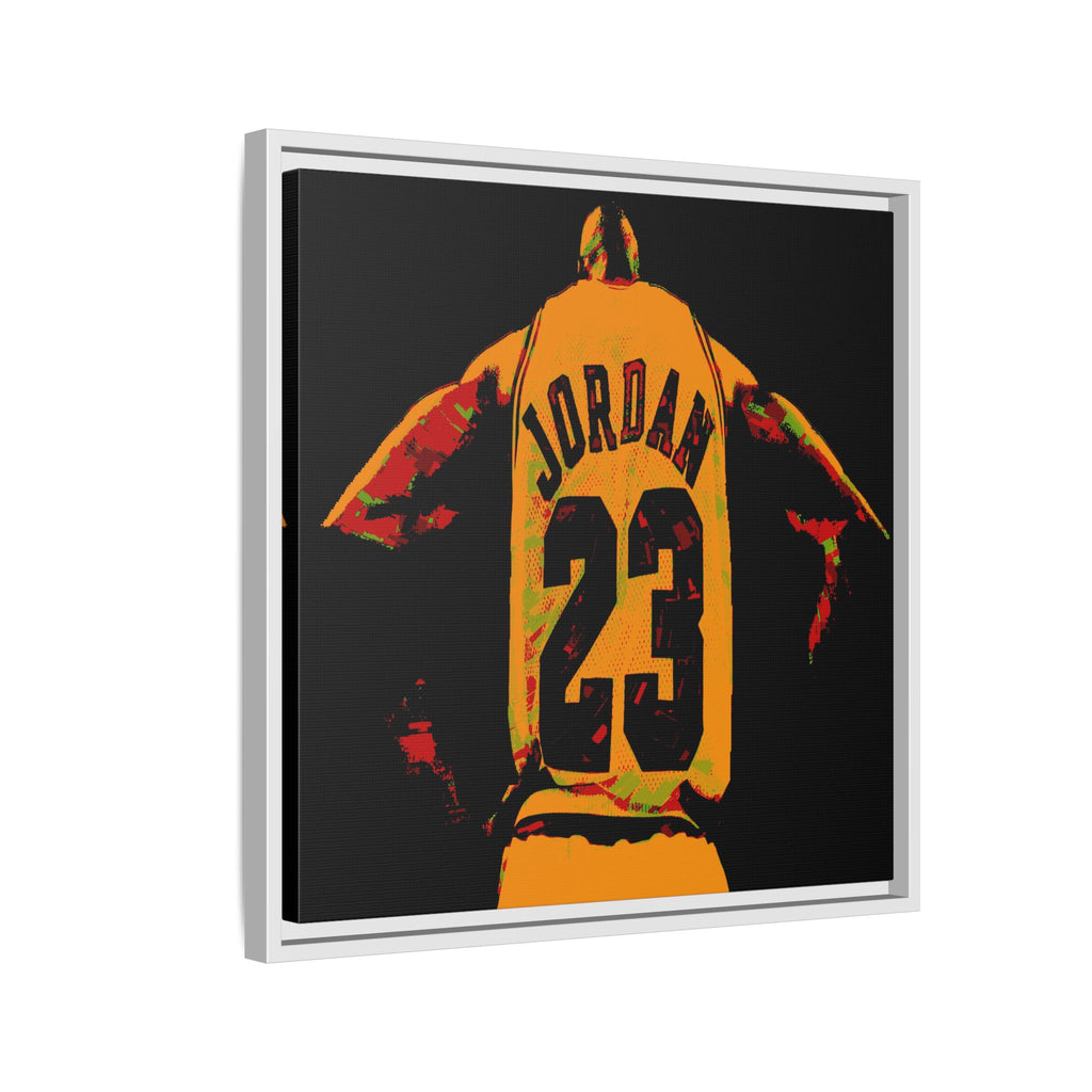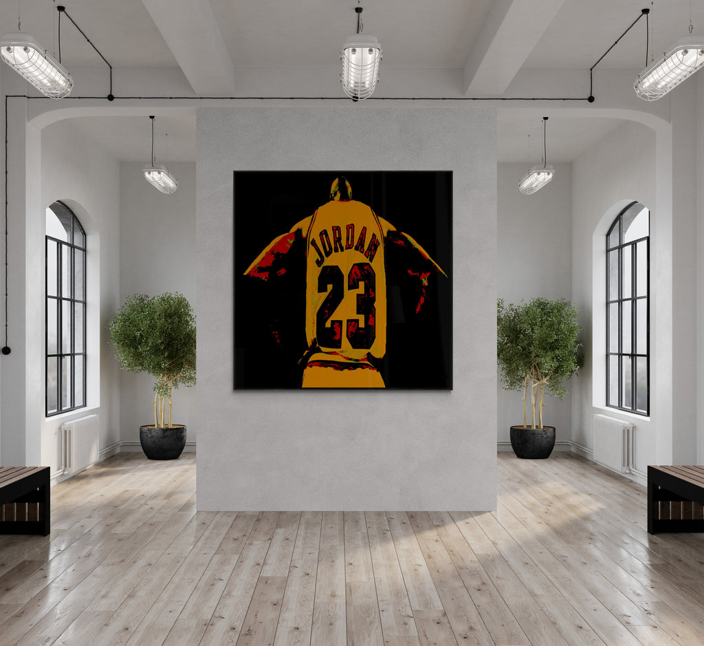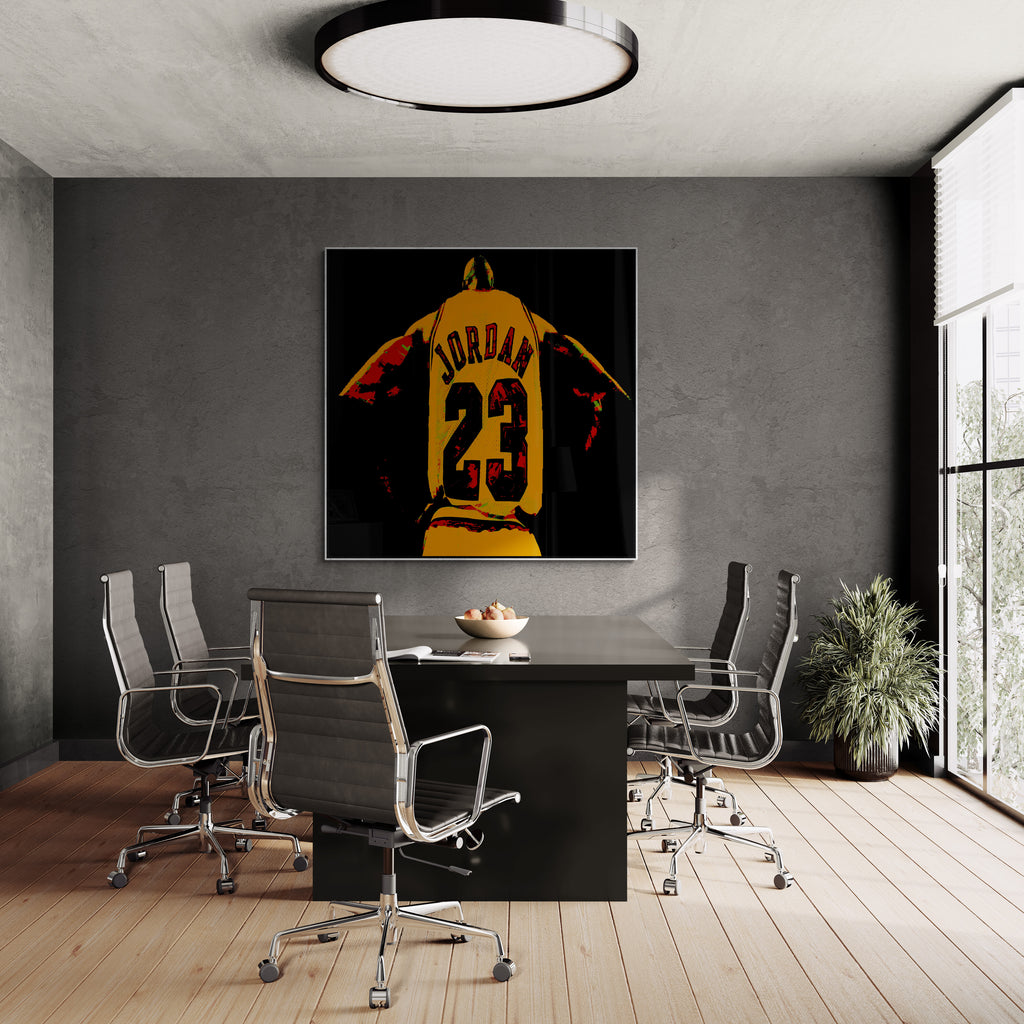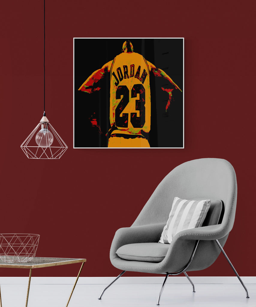 This striking graphic art design pays tribute to the legendary Michael Jordan, capturing his powerful stance from behind in bold, abstract tones. The iconic number 23 dominates the composition, symbolizing athletic excellence, determination, and enduring legacy. With its dynamic color treatment and sharp contrasts, Airborne Legacy is a visual celebration of greatness, perfectly blending sports history with contemporary artistic flair.