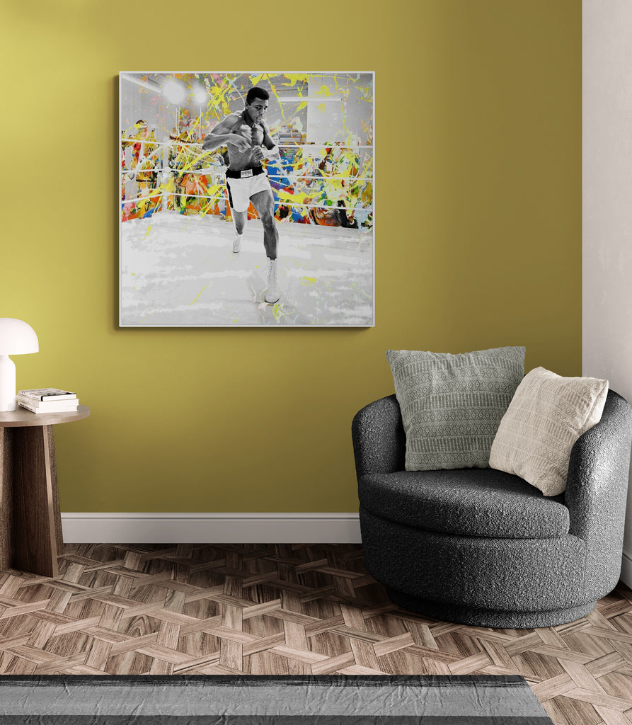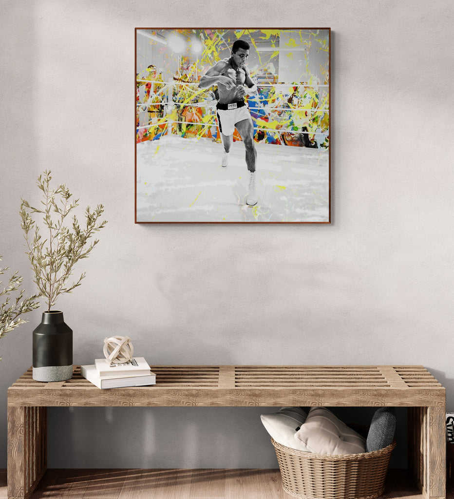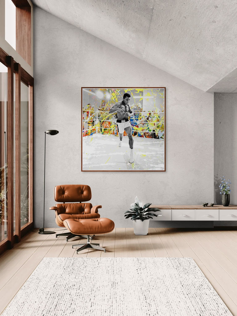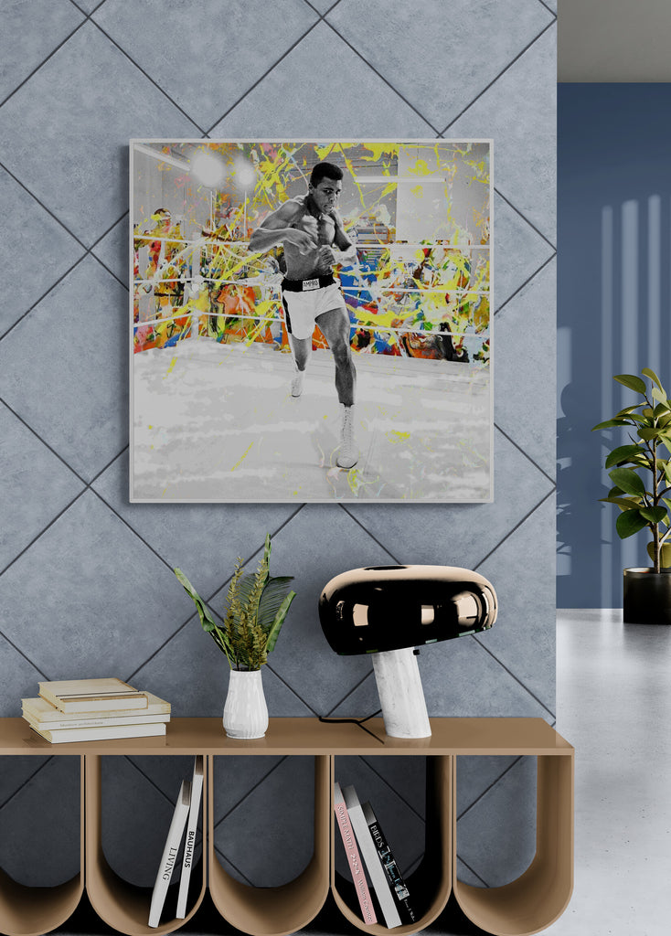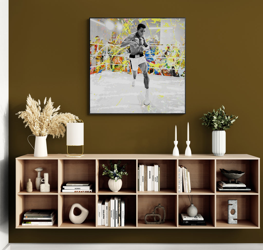 As viewers gaze upon this captivating artwork, they are drawn into the world of Muhammad Ali, where strength, courage, and resilience reign supreme. It's a tribute to a true sporting icon and a celebration of his enduring legacy, captured in a bold and dynamic graphic art design.