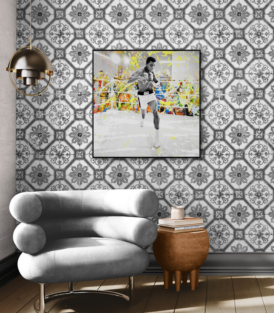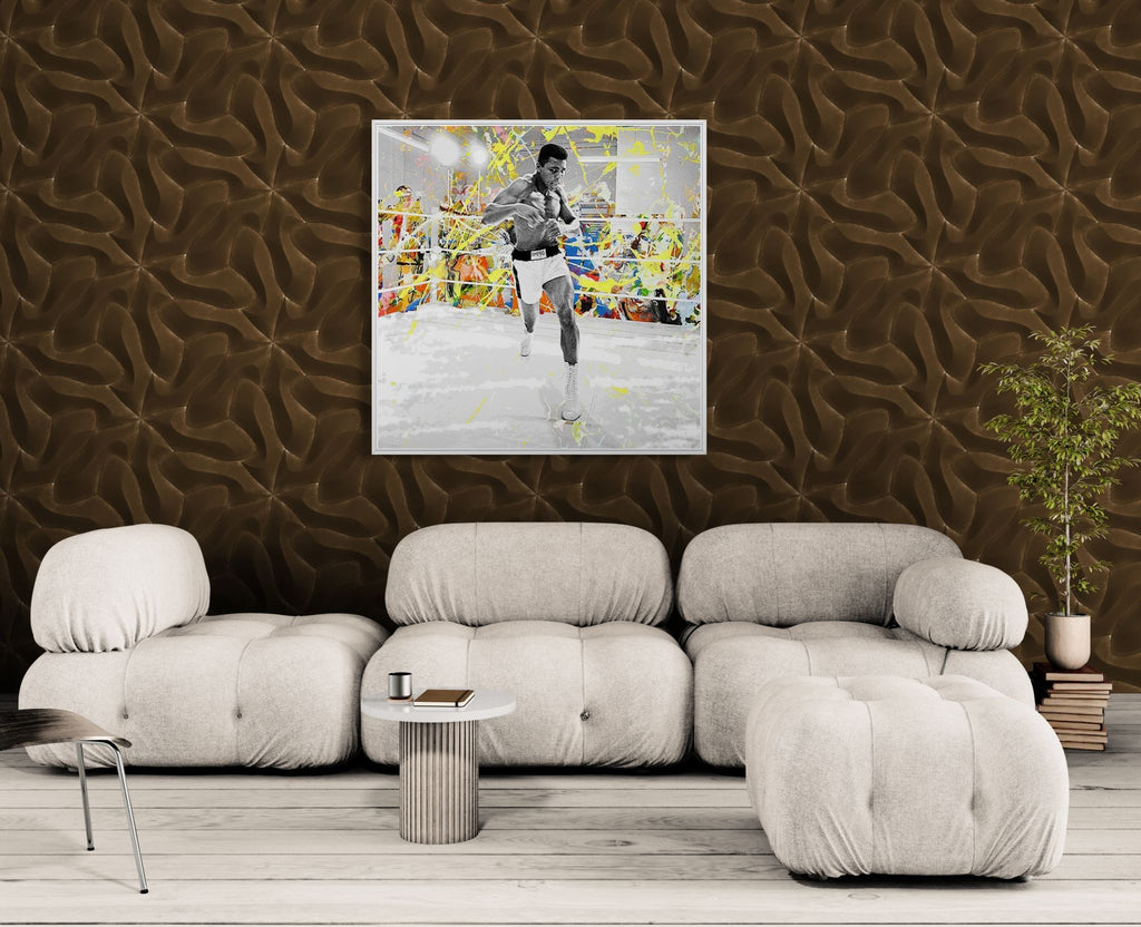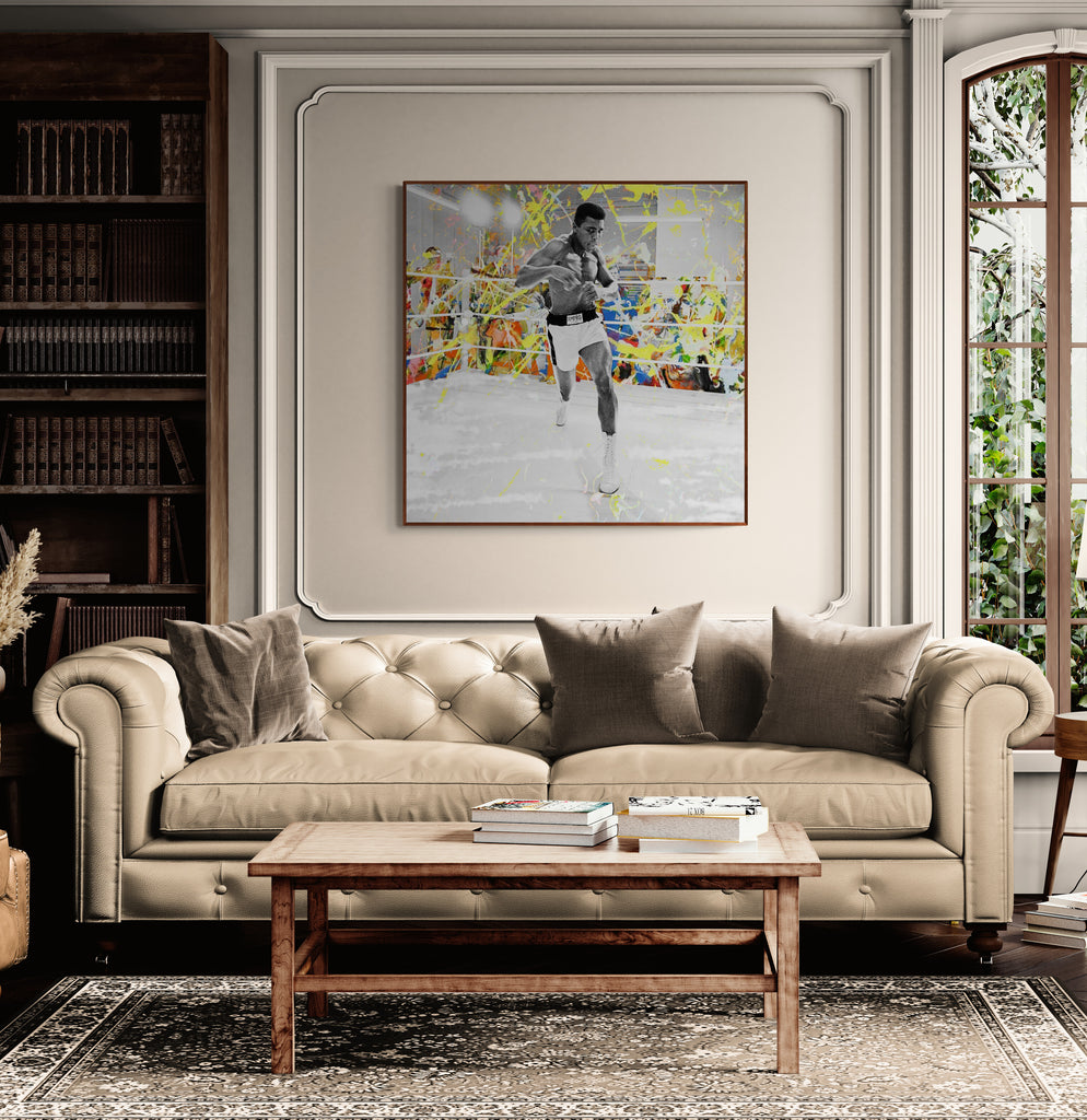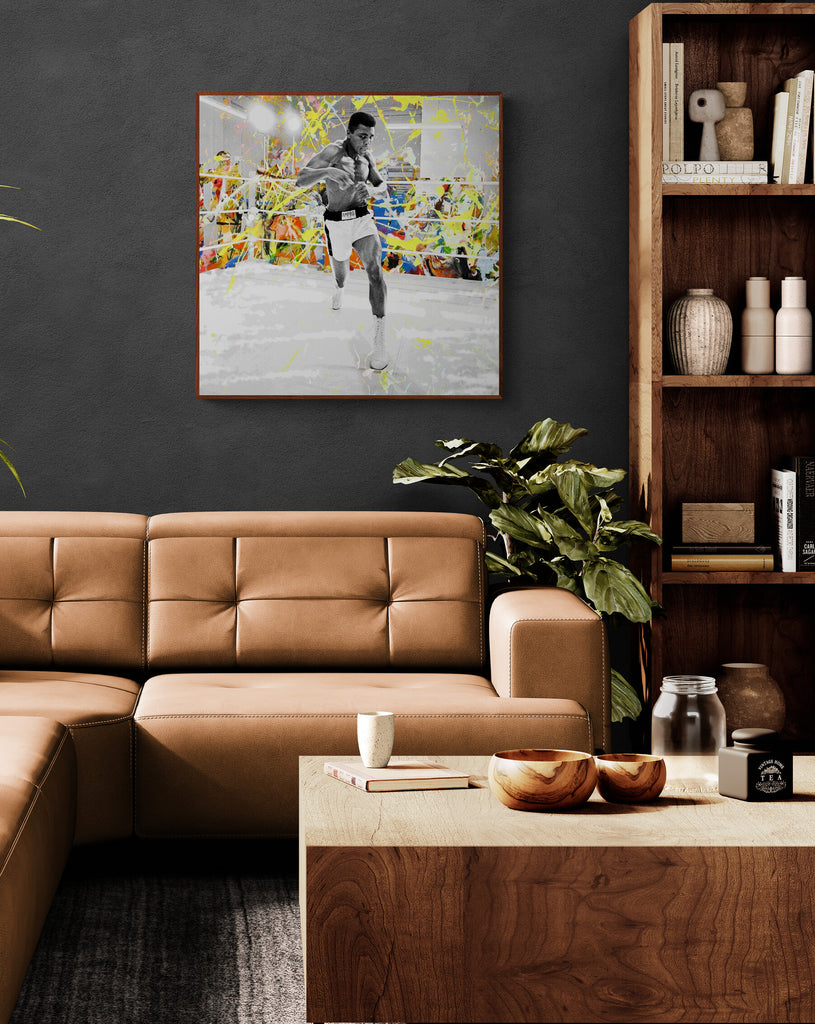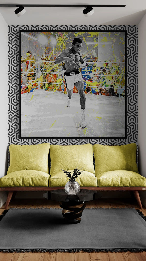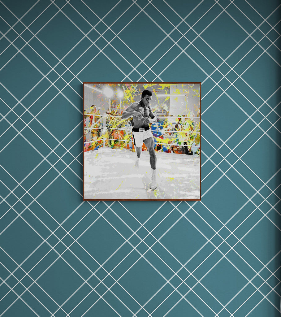 As viewers gaze upon this captivating artwork, they are drawn into the world of Muhammad Ali, where strength, courage, and resilience reign supreme. It's a tribute to a true sporting icon and a celebration of his enduring legacy, captured in a bold and dynamic graphic art design.