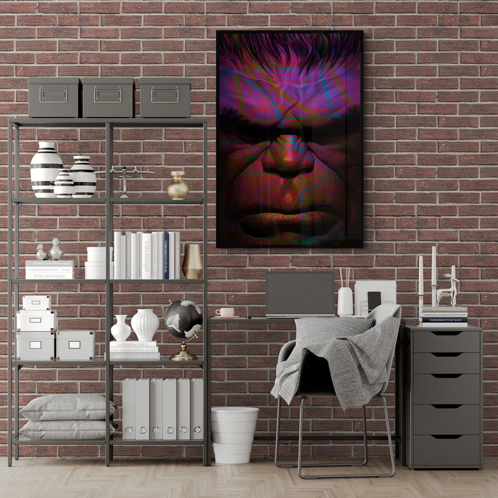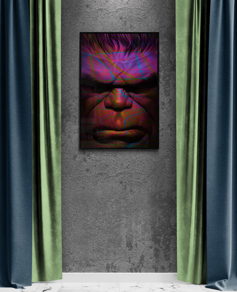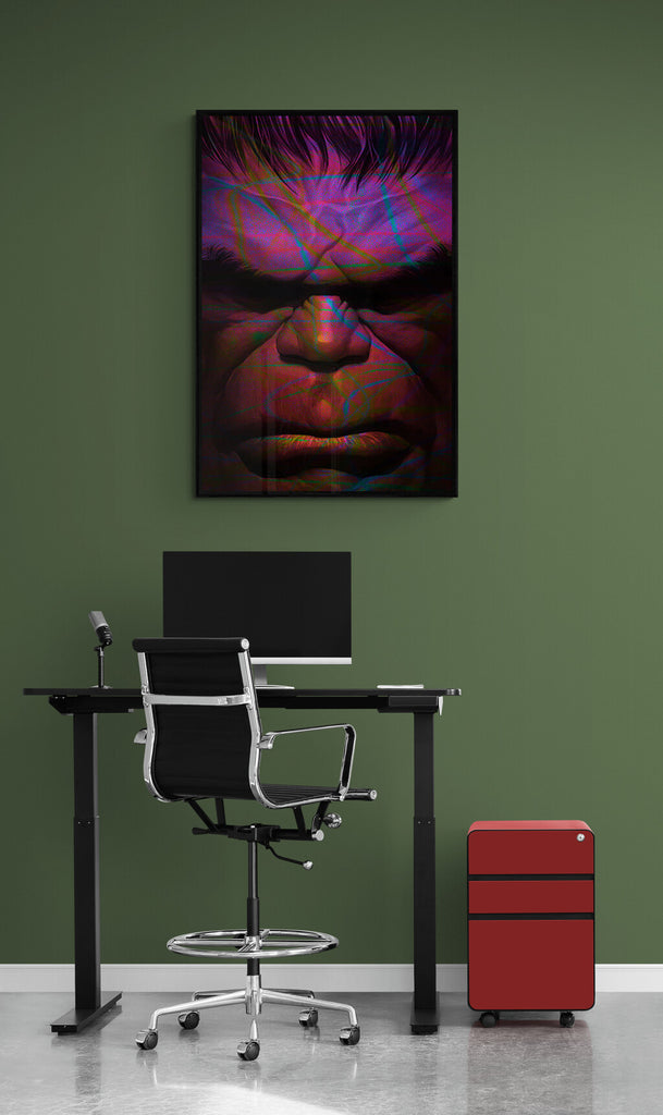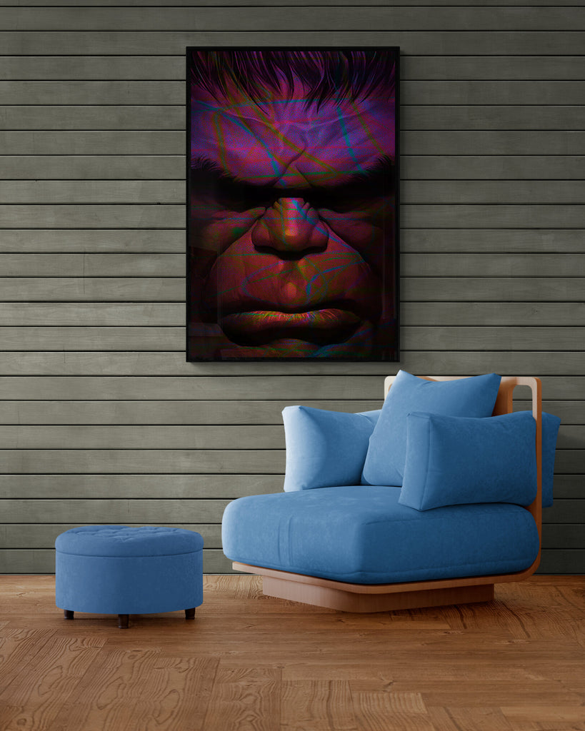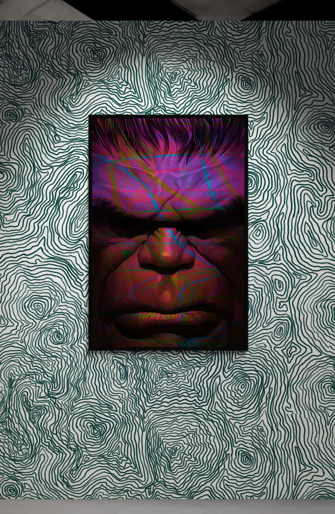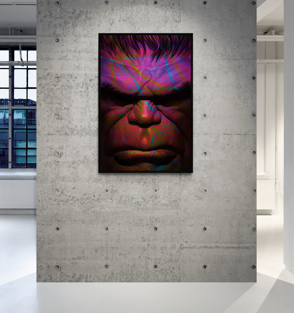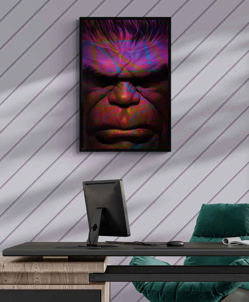 This piece is visually impactful, capturing the raw emotion and power of the character while incorporating abstract elements that add artistic depth and intrigue.
